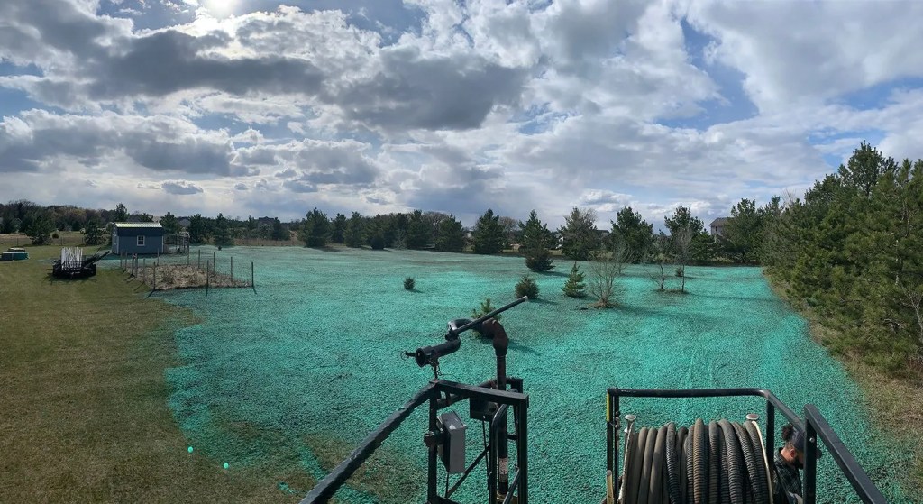 The hydroseed mixture locks in moisture and nutrients, promoting deeper root growth and long-term lawn durability in Minnesota and Wisconsin climates.